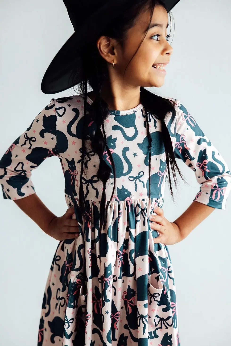 HOCUS PURR-CUS 3/4 SLEEVE POCKET TWIRL DRESS